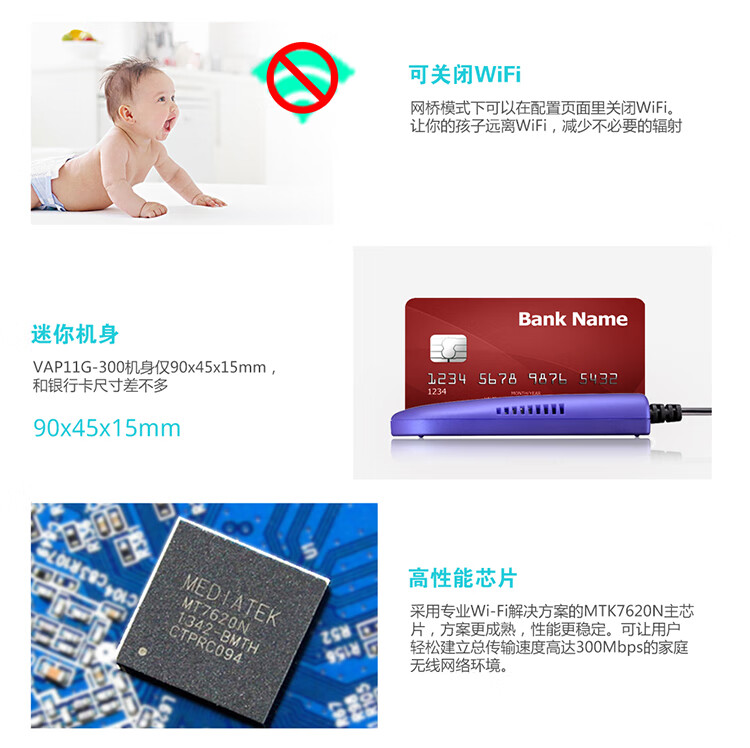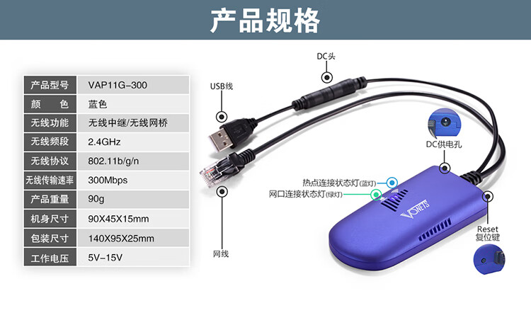 商品名称:VONETS无线WiFi转有线网桥设备联网通信信号中继放大增强AP扩展器VAP11G-300工业监控工程接收信号转有线 VAP11G-300 标配