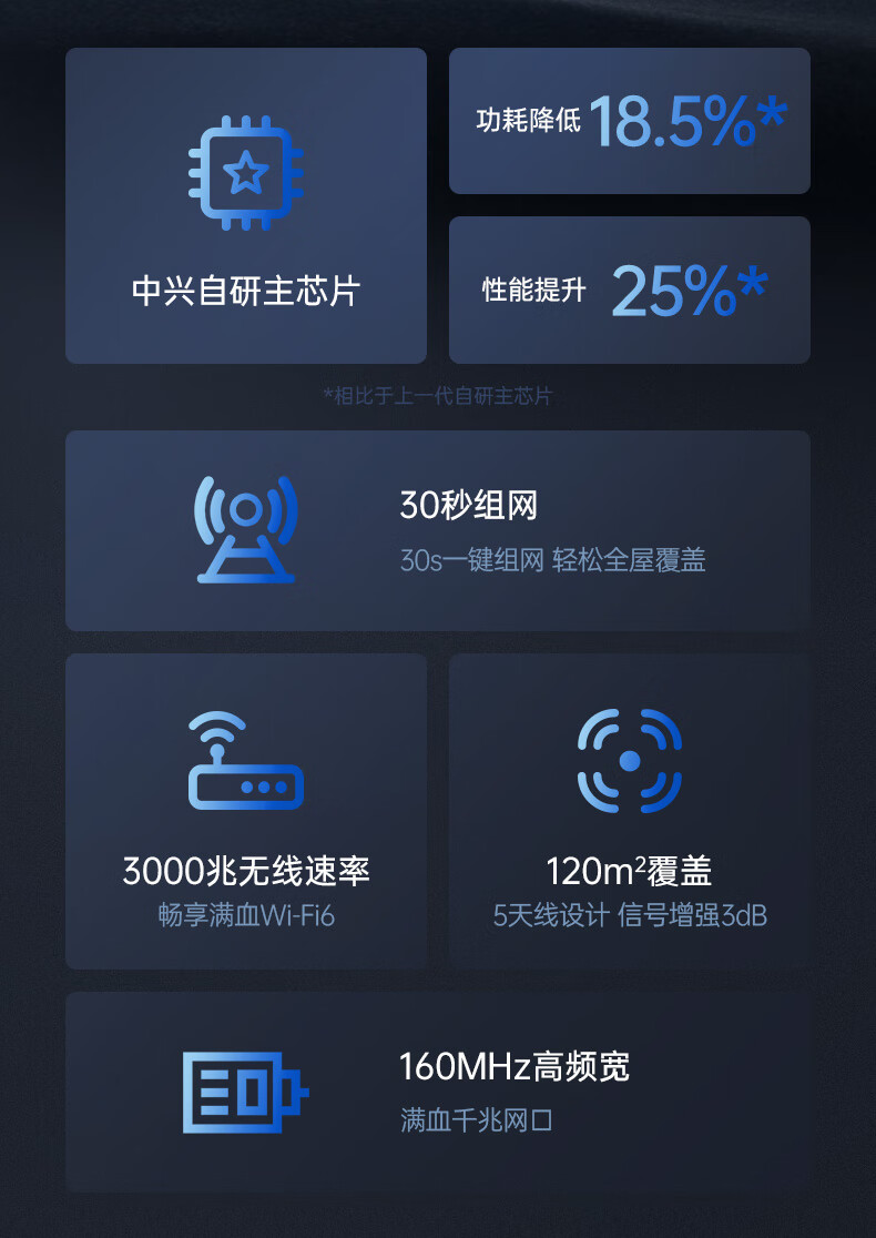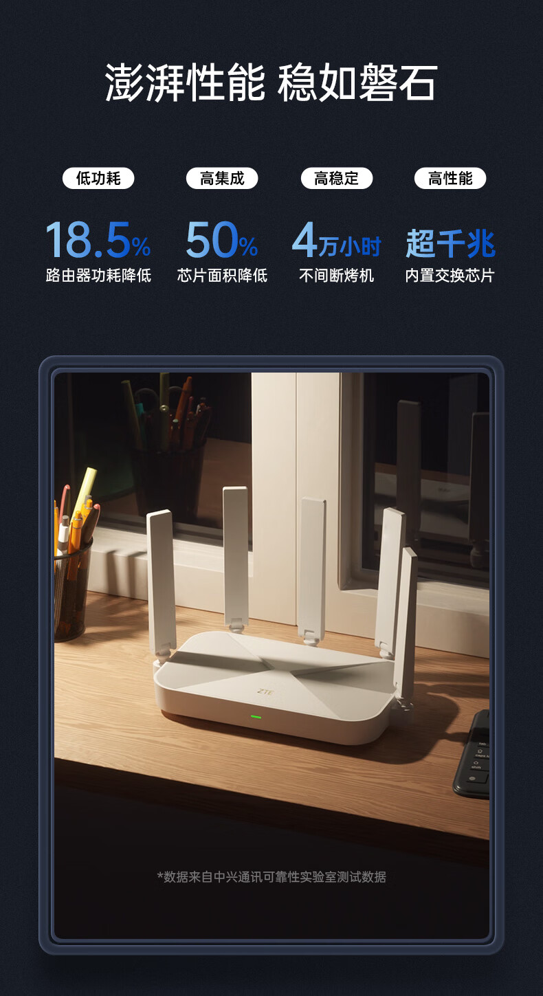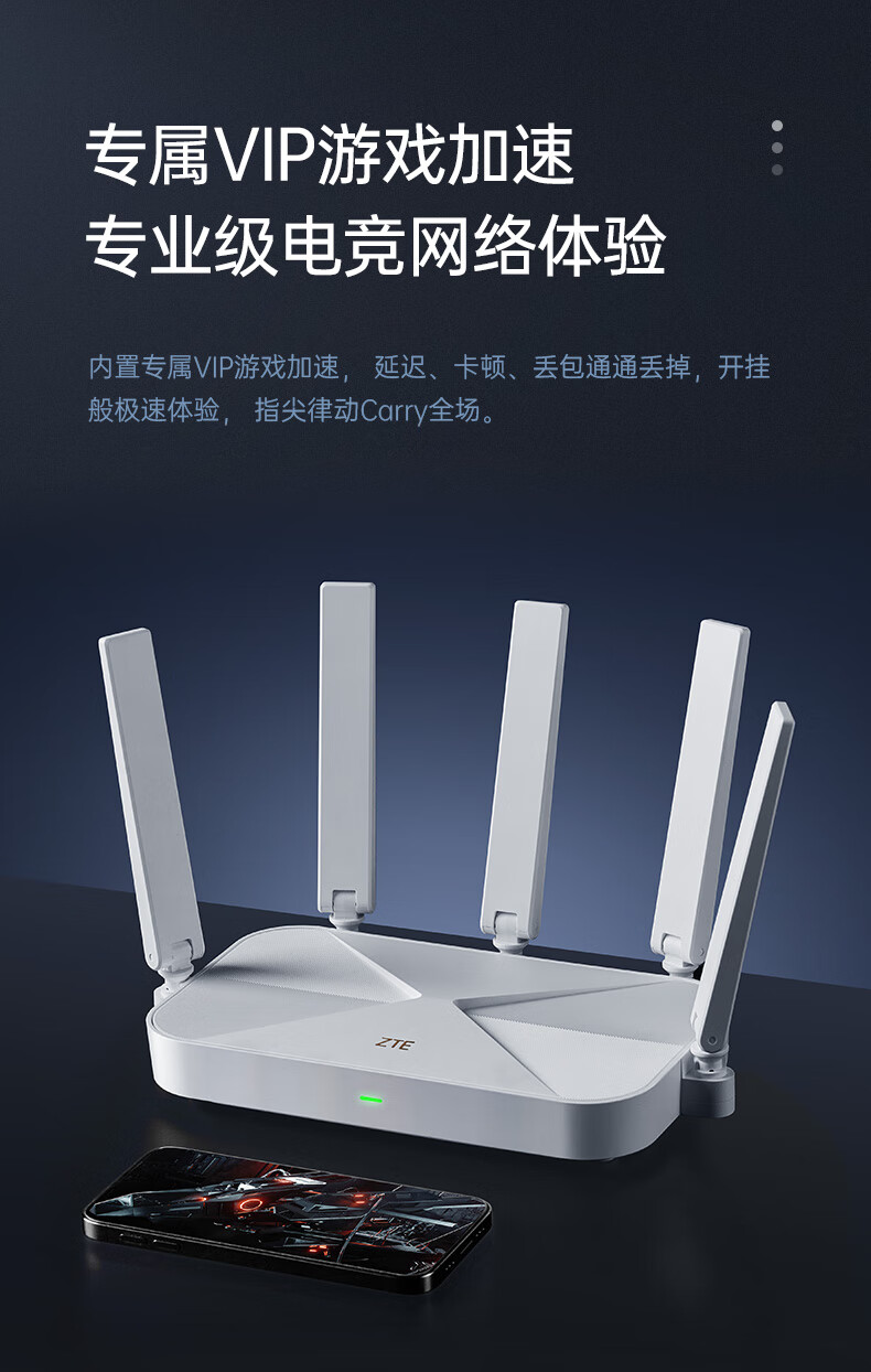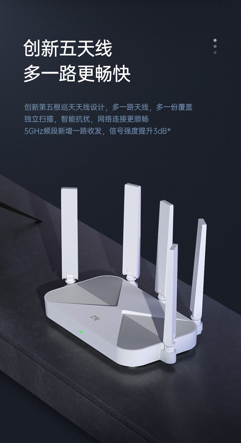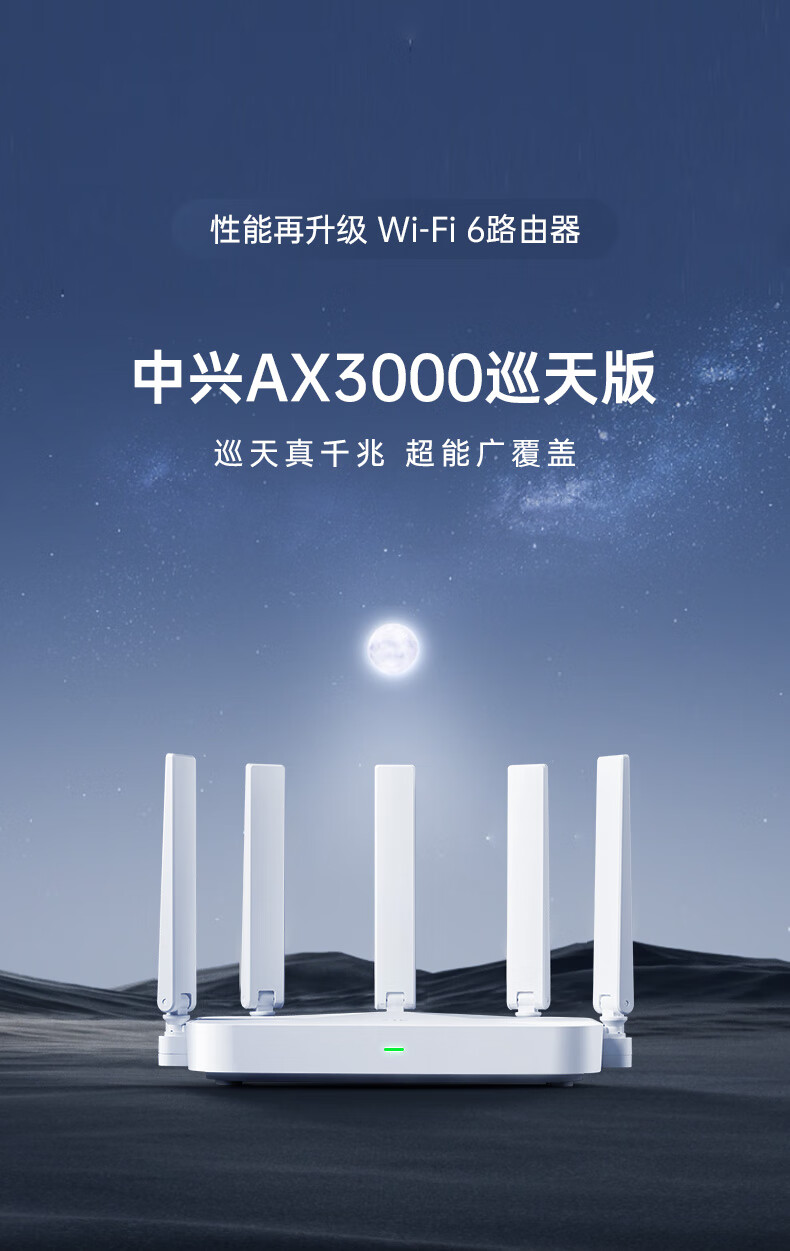 商品名称:中兴(ZTE)巡天 AX3000满血WIFI6千兆无线路由器 自研双核主芯片 5G双频穿墙王wifi路由 Mesh 3000M速率