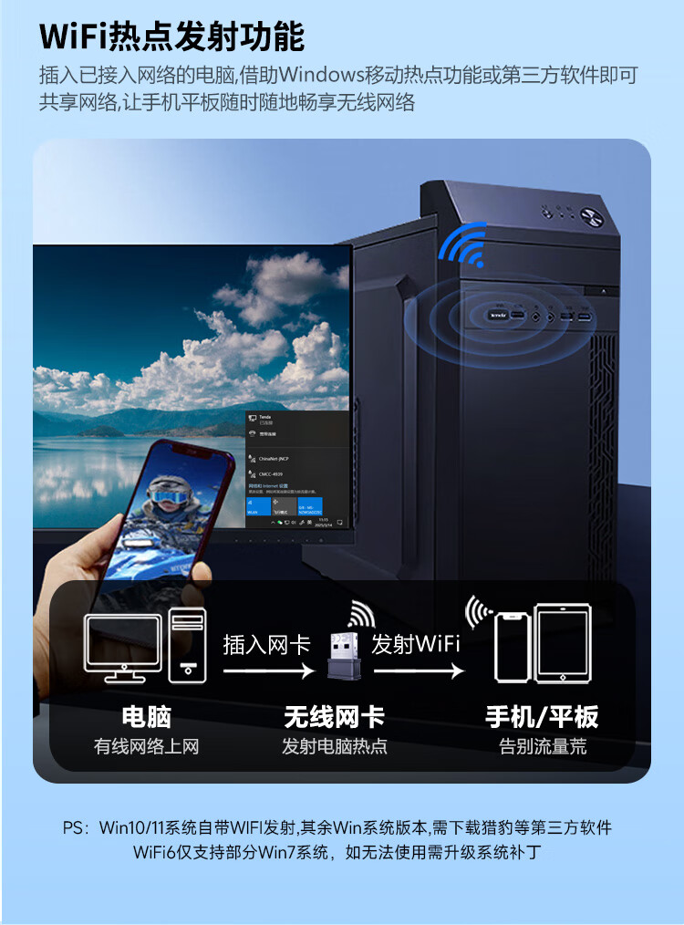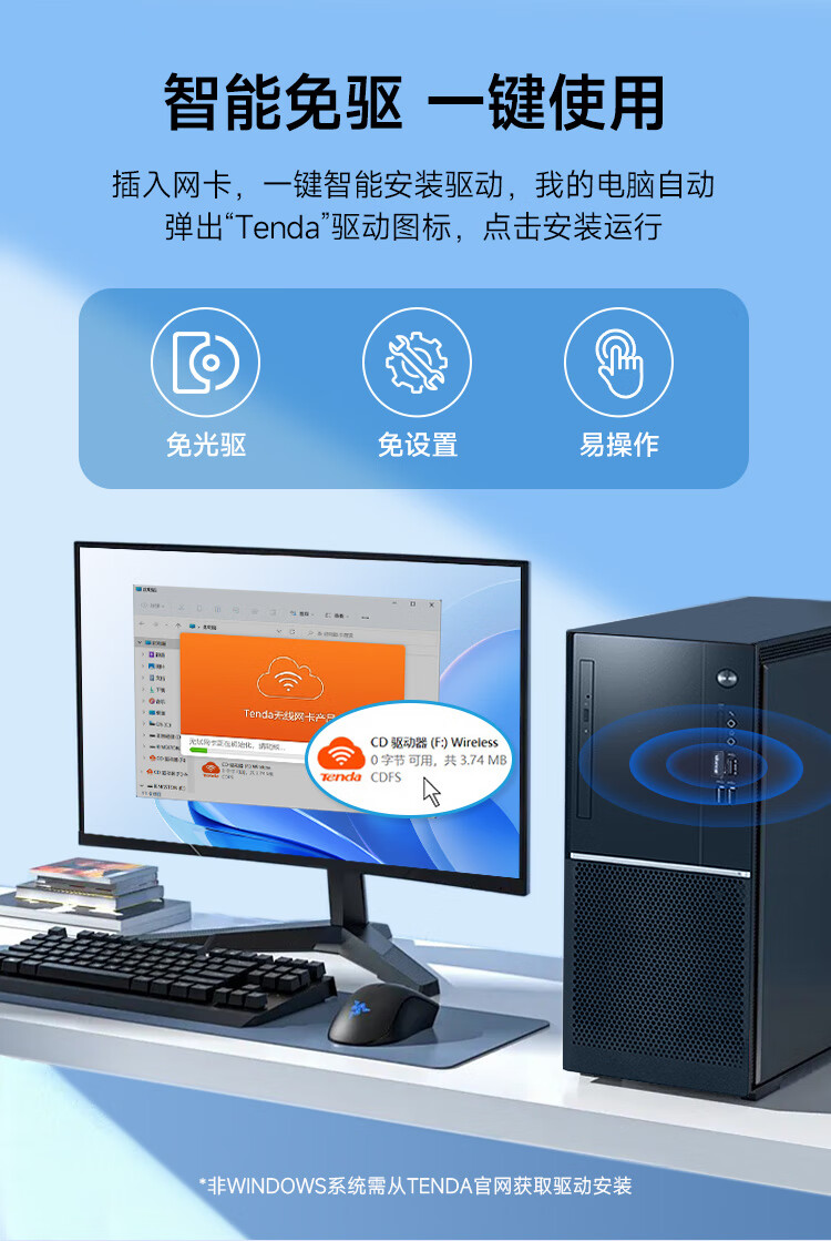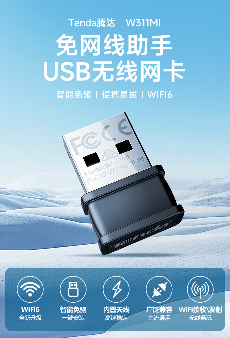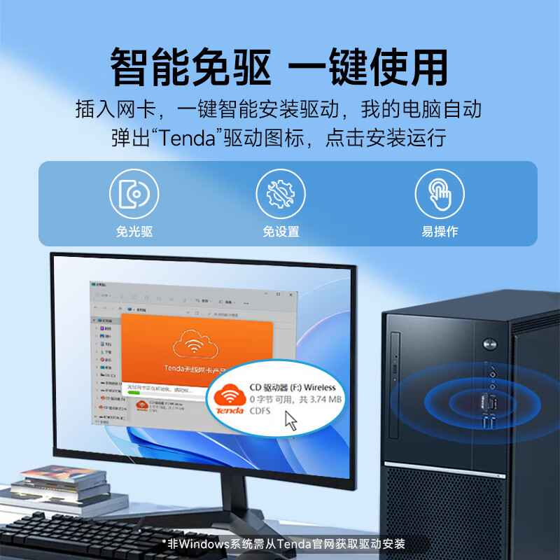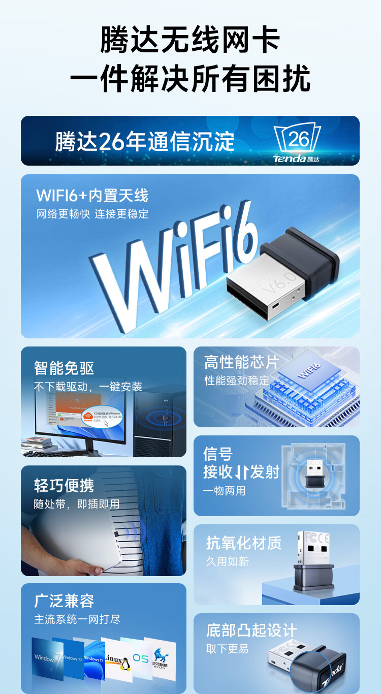 Tenda腾达 WiFi6免驱动usb无线网卡台式机专用 wifi接收器台式电脑笔记本主机网络wifi发射 内置天线