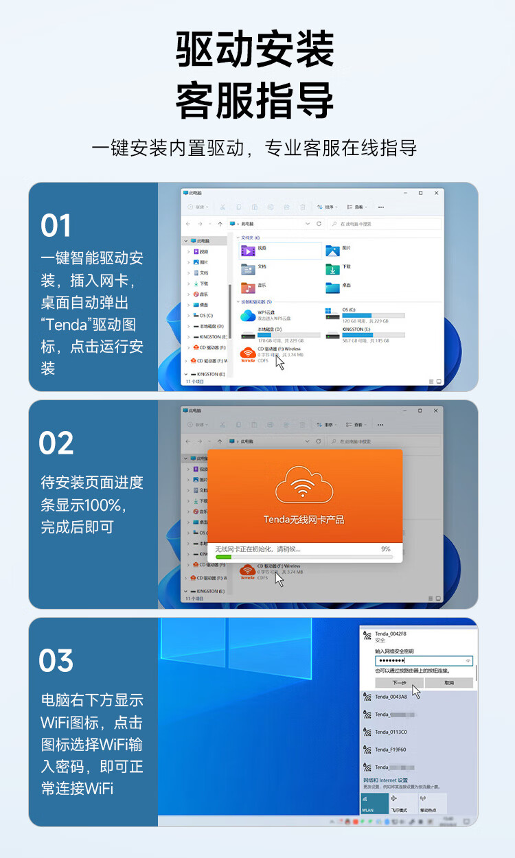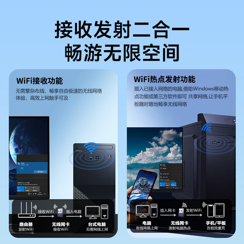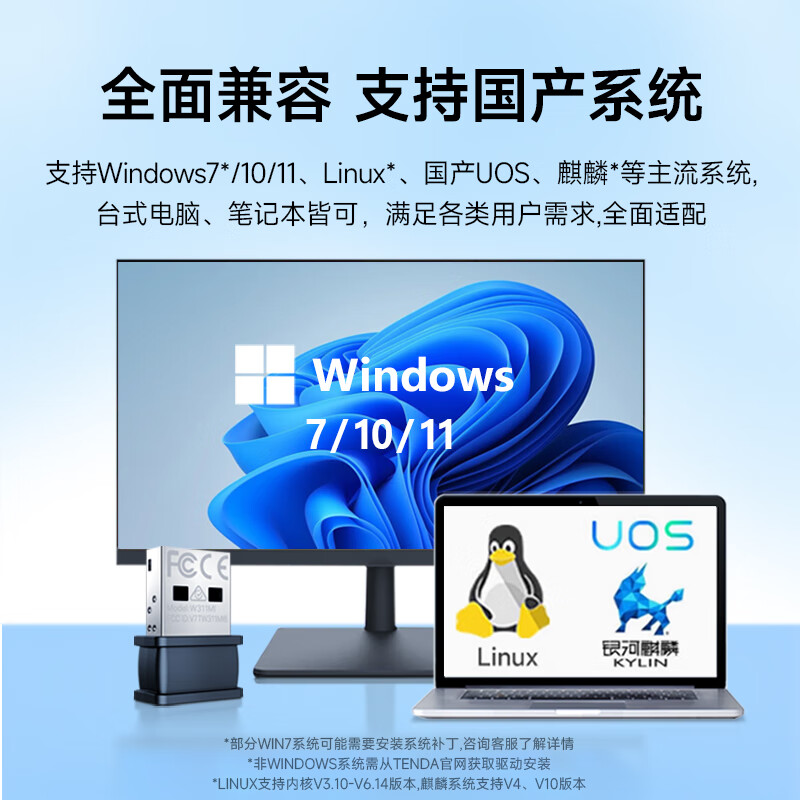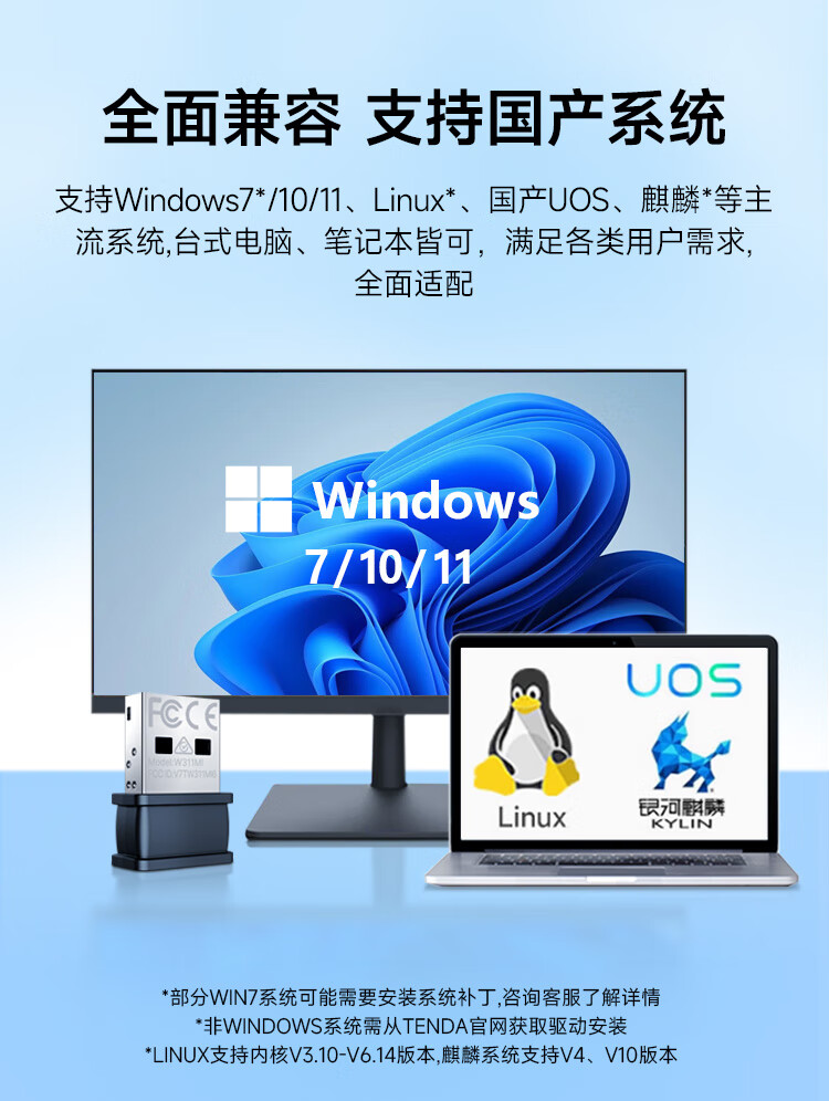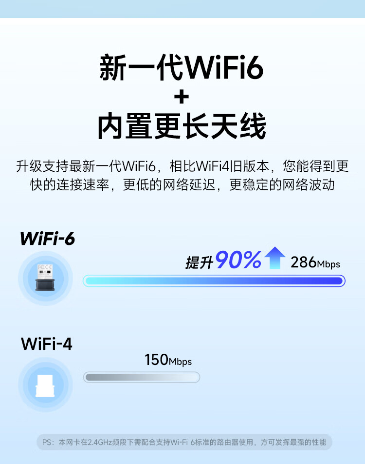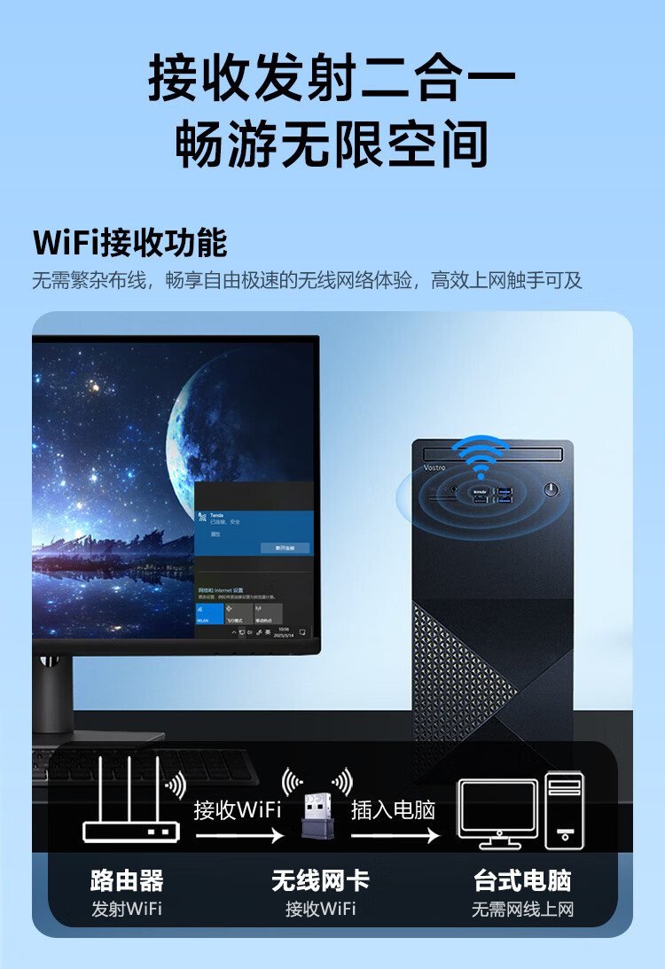 Tenda腾达 WiFi6免驱动usb无线网卡台式机专用 wifi接收器台式电脑笔记本主机网络wifi发射 内置天线