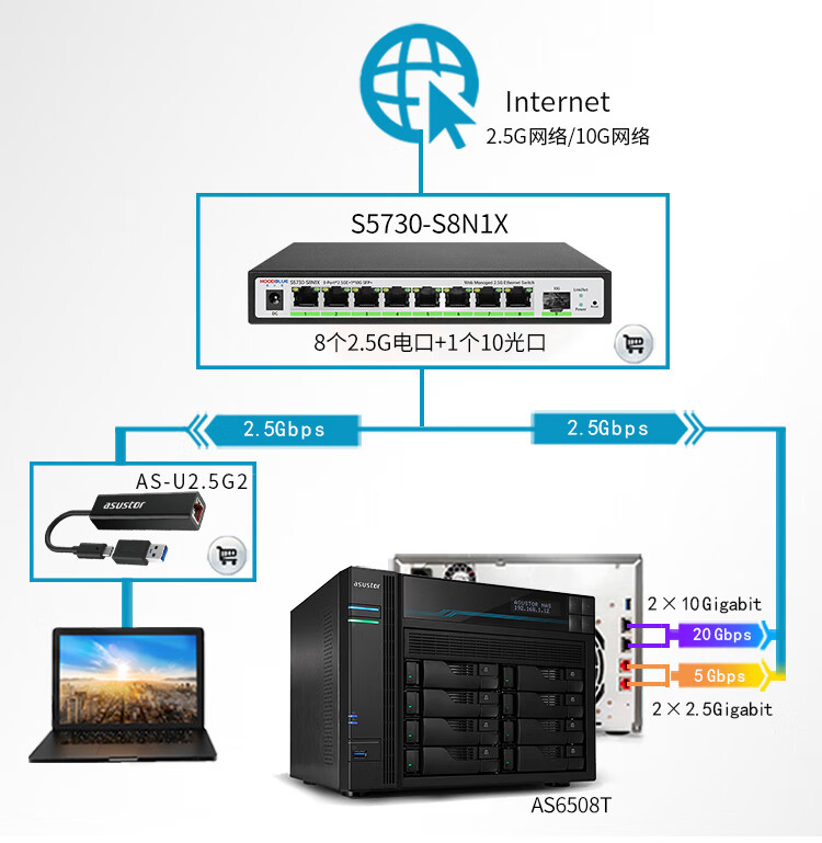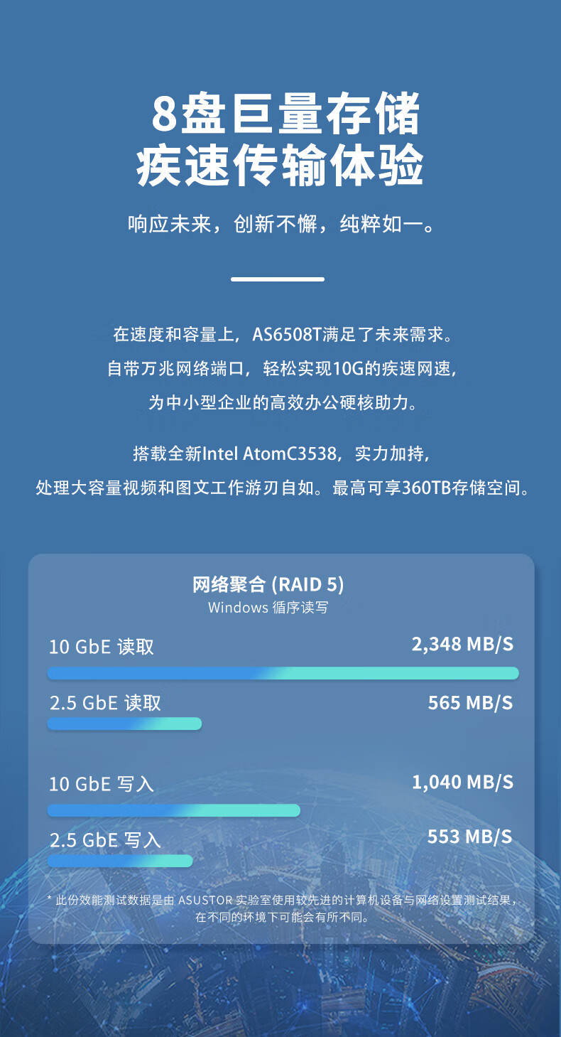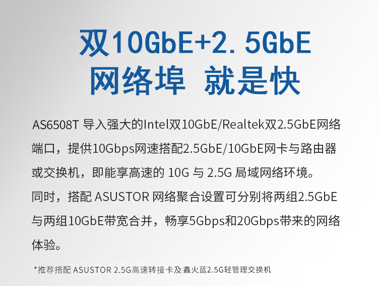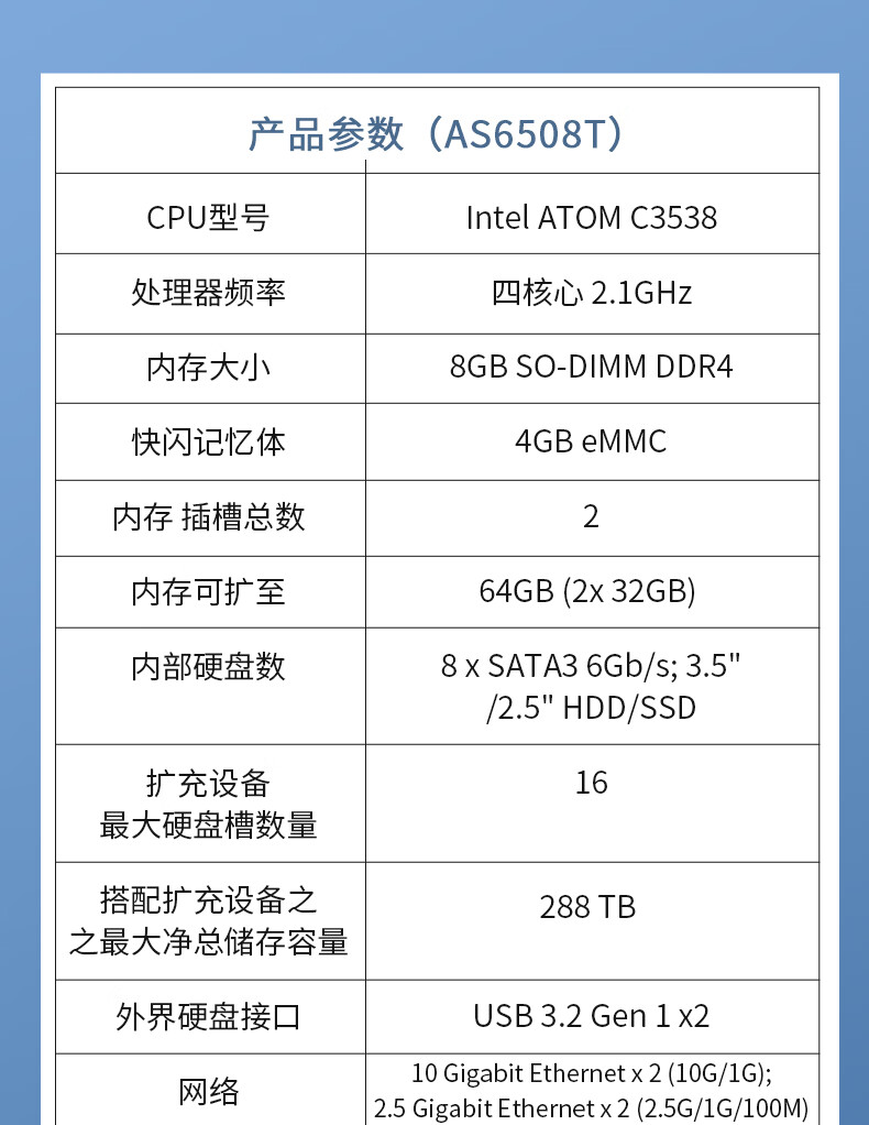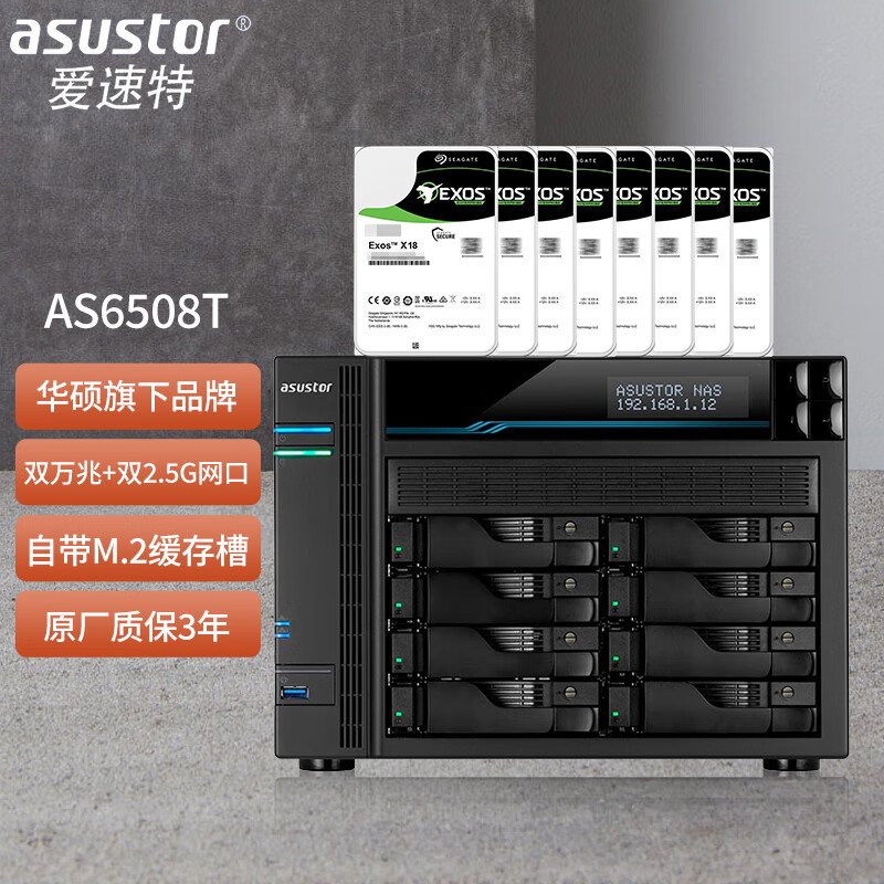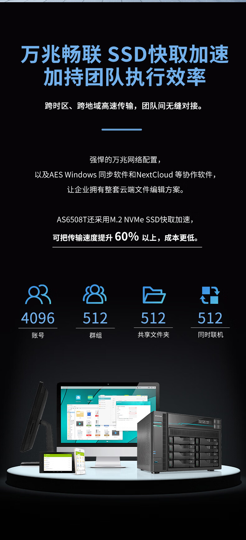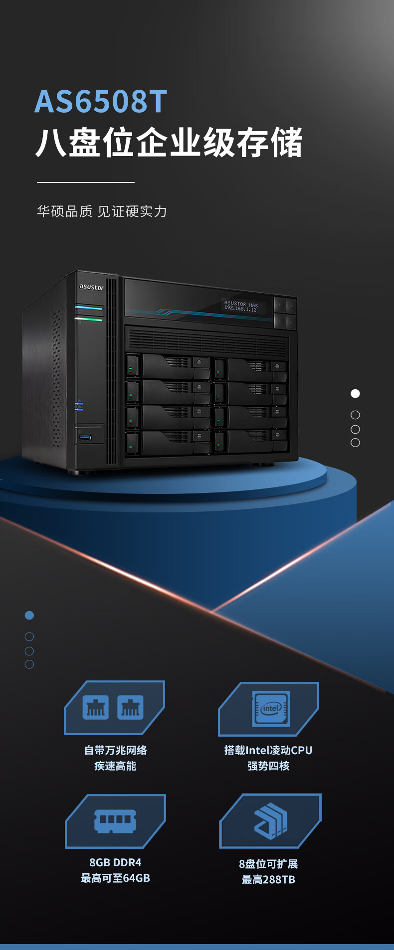 商品名称:爱速特(asustor)AS6508T万兆NAS网络存储器私有云网盘8盘位磁盘阵列企业办公文件远程共享备份存储器AS6508T