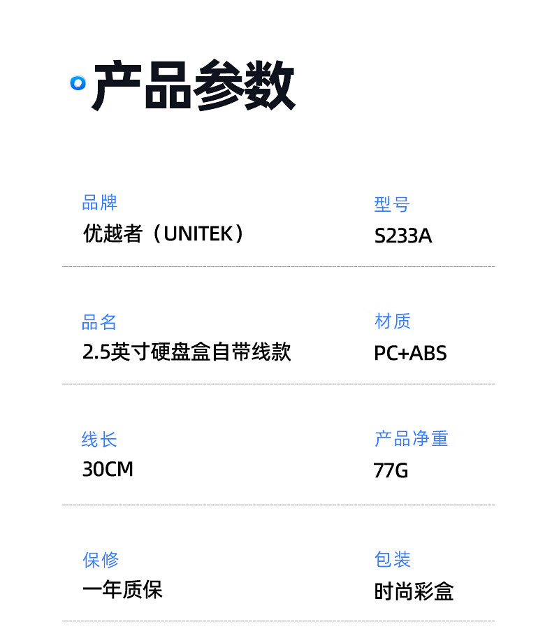 商品名称:优越者(UNITEK)USB3.0移动硬盘盒2.5英寸外置壳适用SATA串口笔记本电脑固态机械ssd硬盘盒子S233A