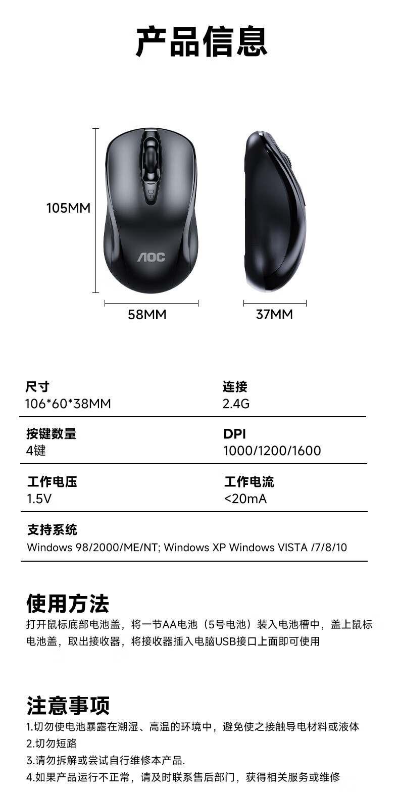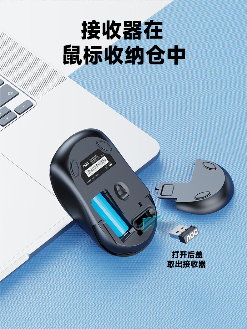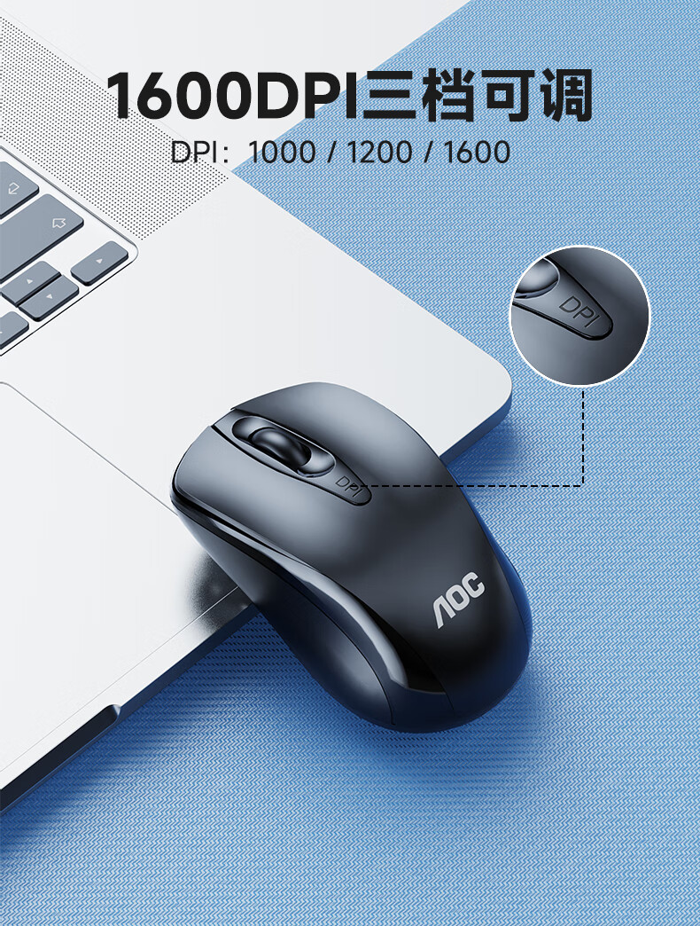 商品名称:AOC MS320无线鼠标 办公鼠标 三档DPI可调 人体工程学 便携鼠标 笔记本电脑鼠标 黑色