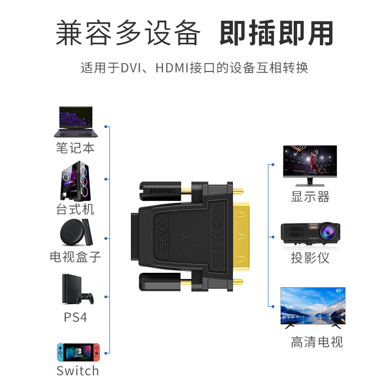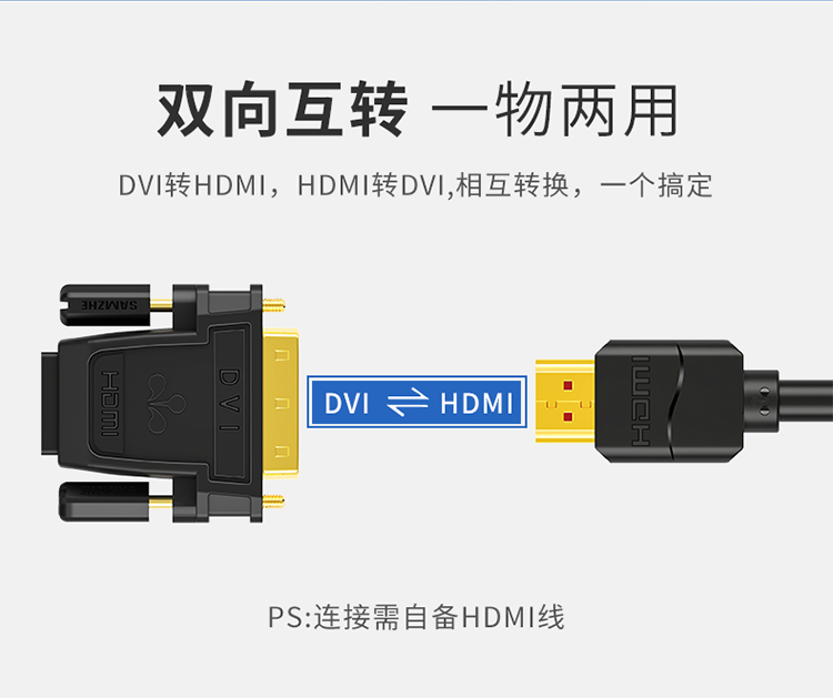 商品名称:山泽 DVI公转HDMI母镀金转接头 DVI24+1/DVI-D转HDMI双向互转 电脑显卡显示器投影仪转换头 ZH-340