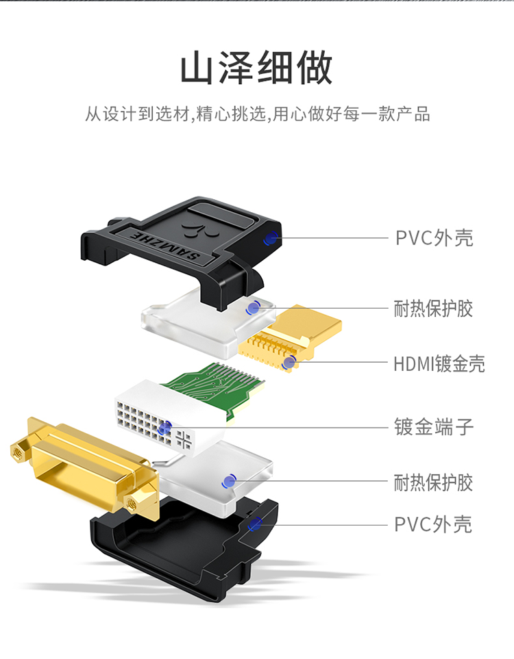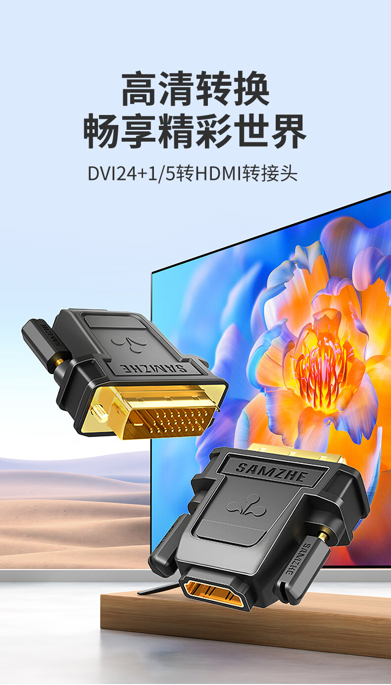 山泽 DVI公转HDMI母镀金转接头 DVI24+1/DVI-D转HDMI双向互转 电脑显卡显示器投影仪转换头 ZH-340