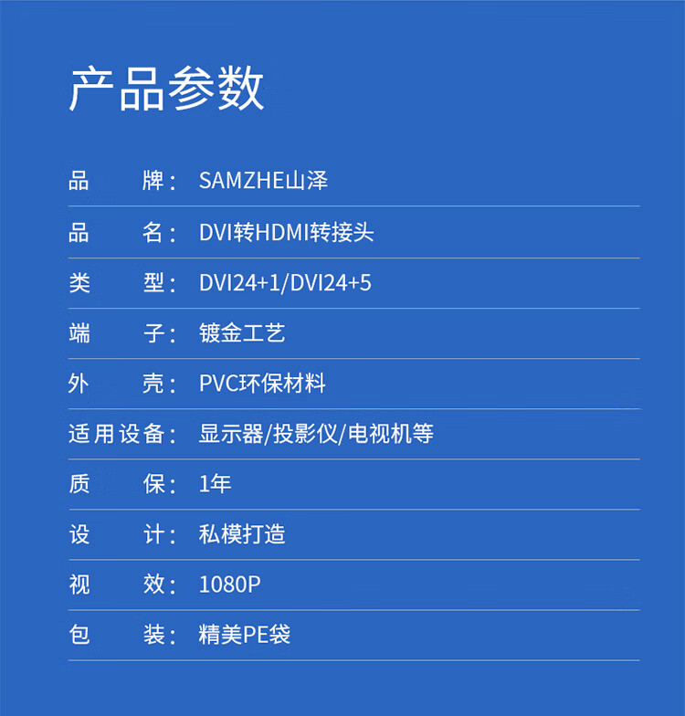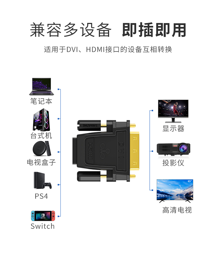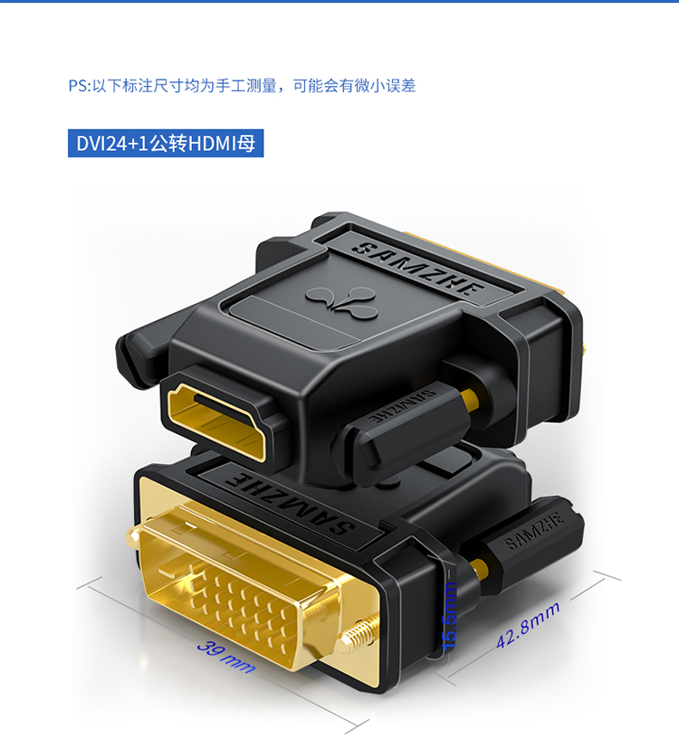 • 包装清单:DVI公转HDMI母转接头 ZH-340 × 1 合格证 × 1