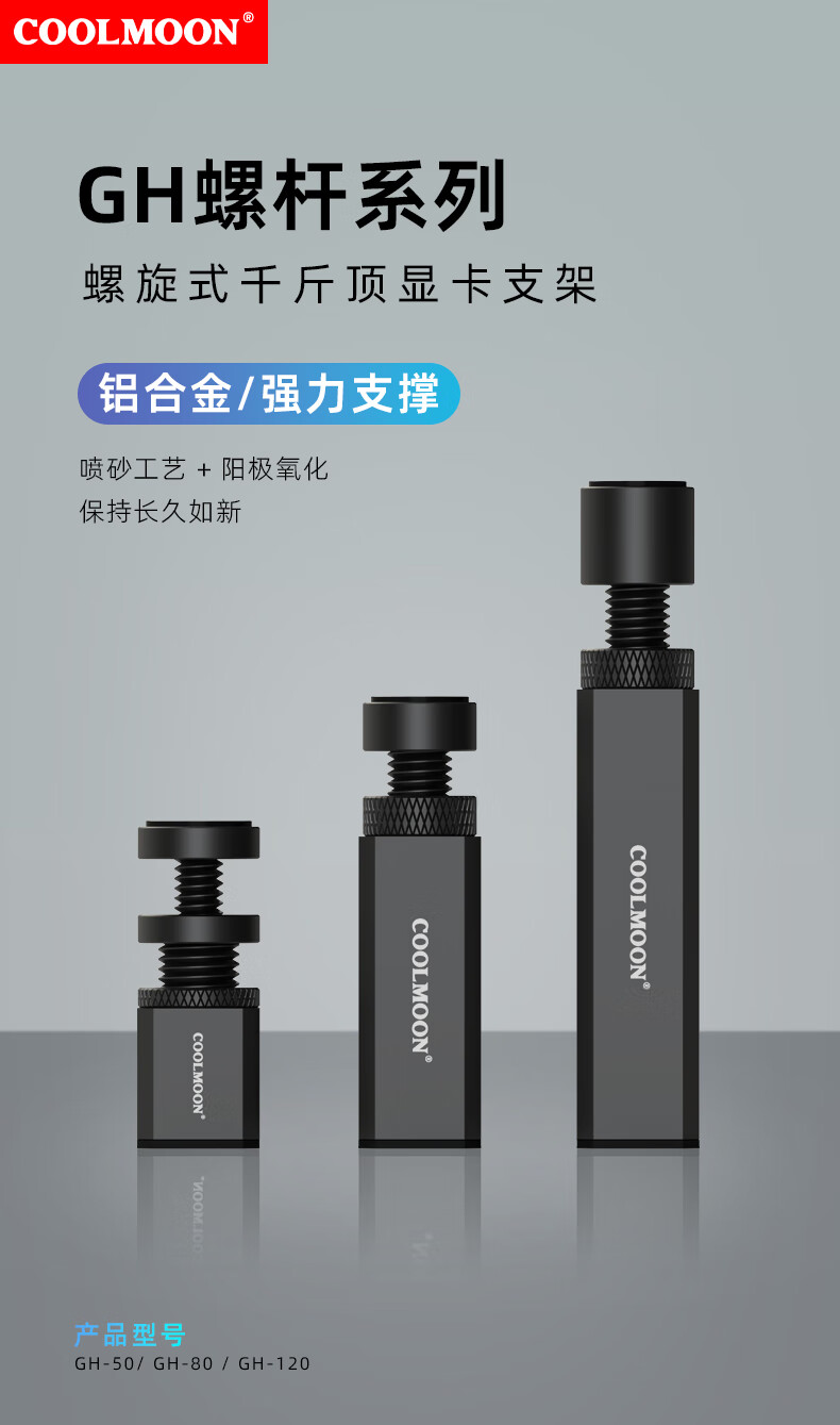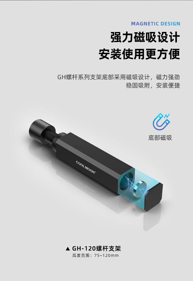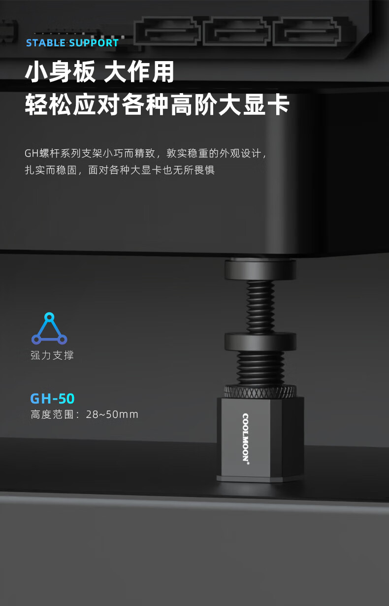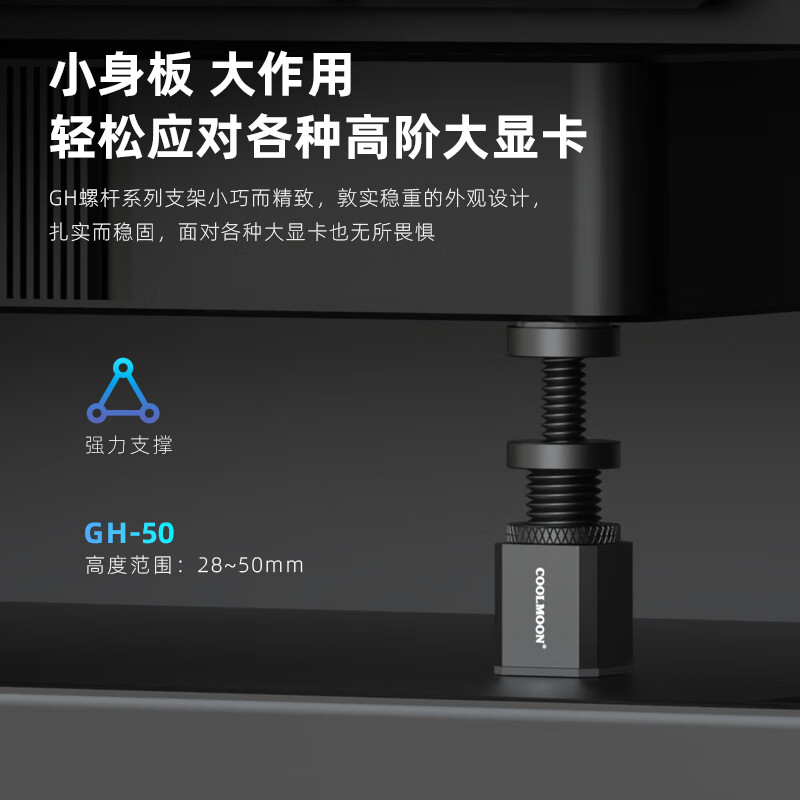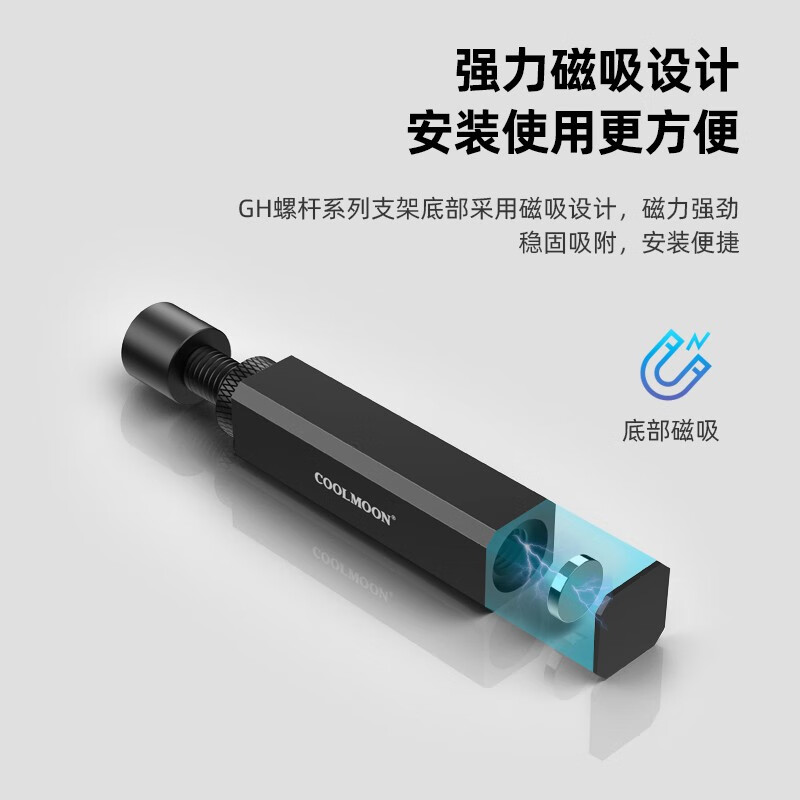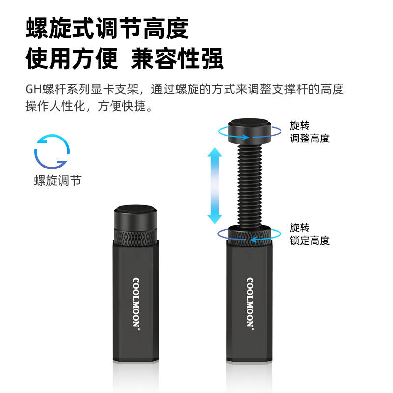 COOLMOON酷月GH系列台式机电脑小机箱显卡支撑架千斤顶螺旋伸缩迷你mini磁吸式40系白色固定托架显卡支架 GH-50黑色磁吸版【伸缩范围2.8-5cm】