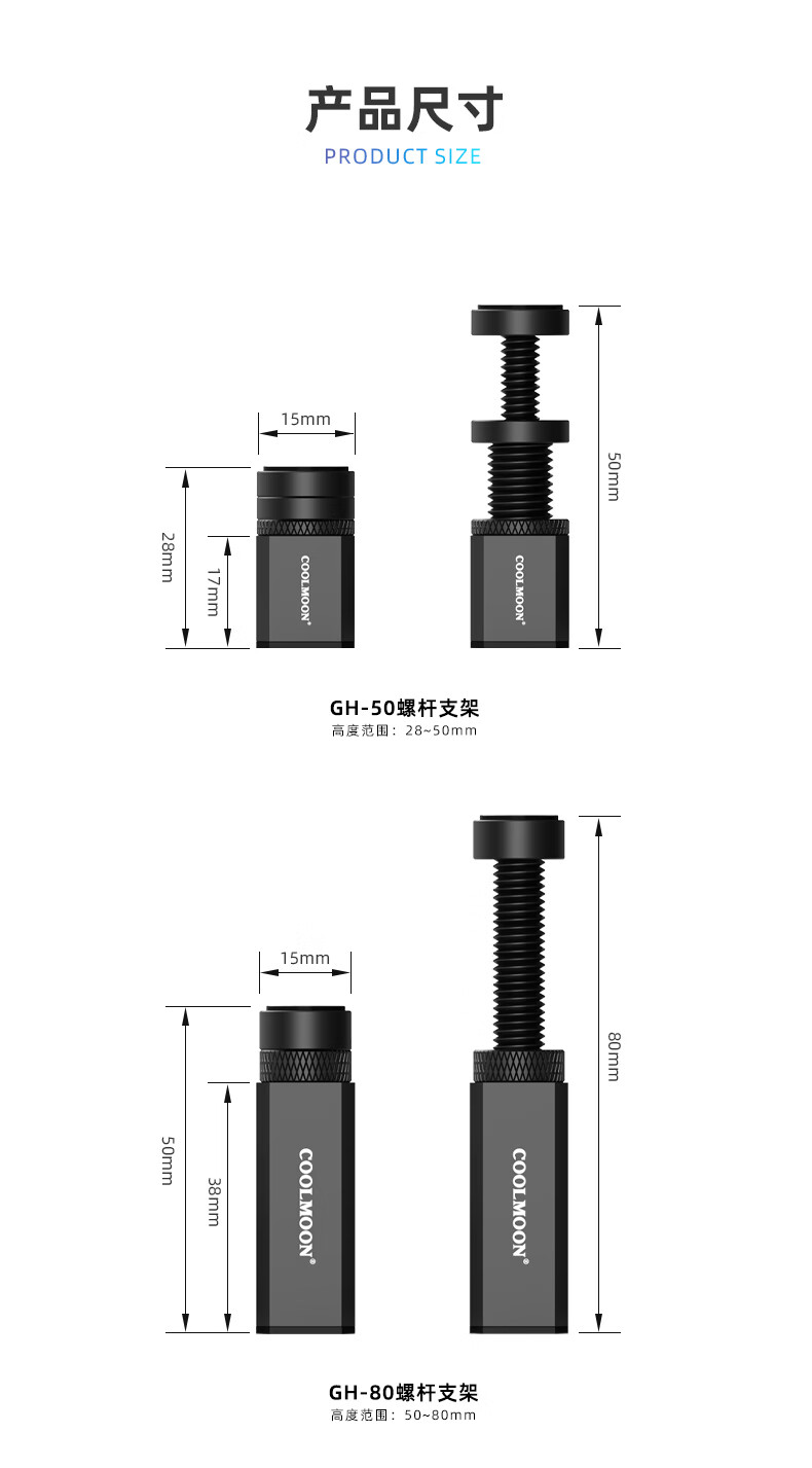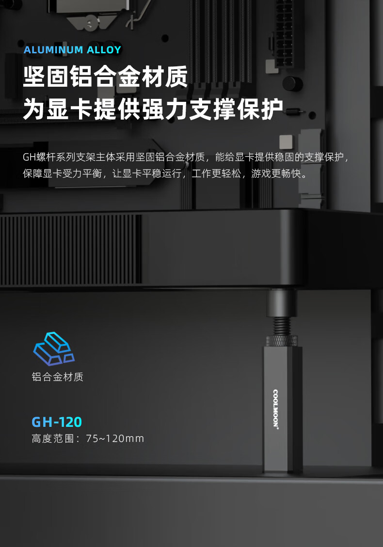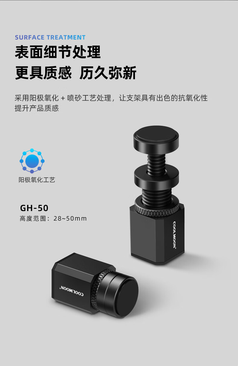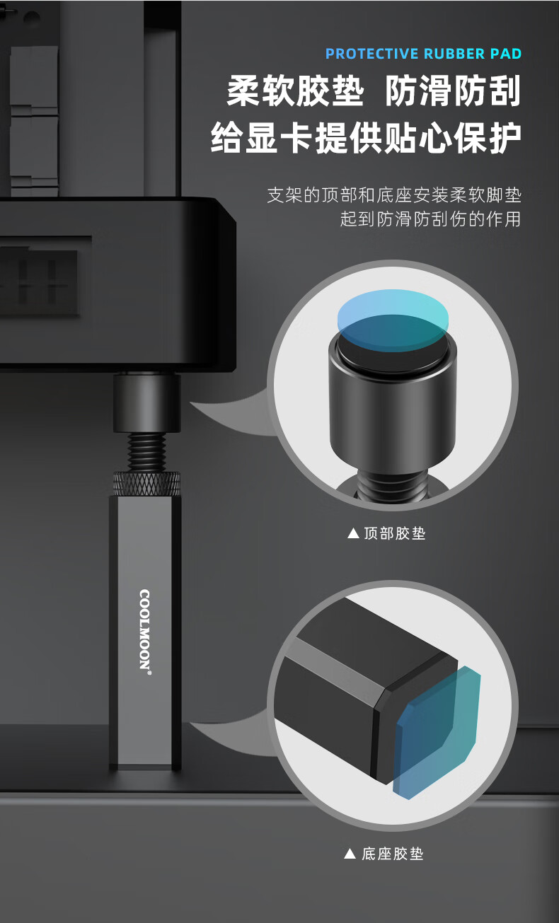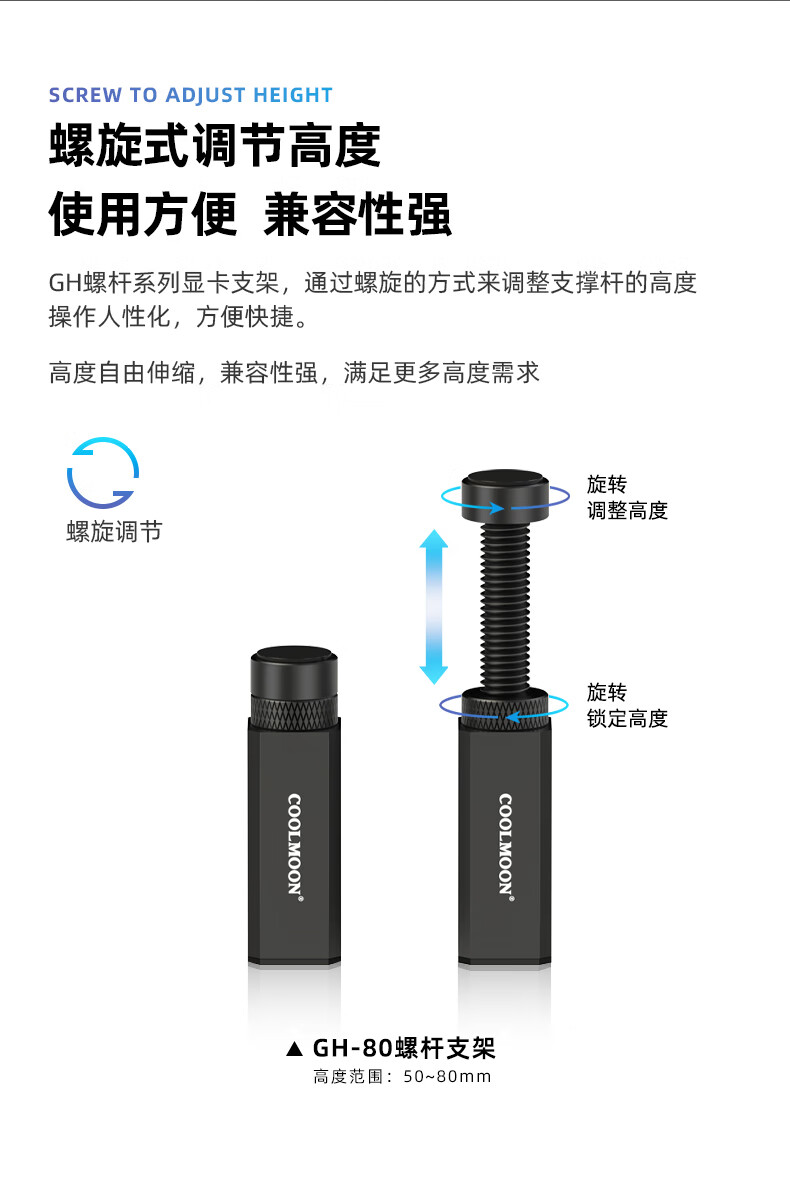 COOLMOON酷月GH系列台式机电脑小机箱显卡支撑架千斤顶螺旋伸缩迷你mini磁吸式40系白色固定托架显卡支架 GH-50黑色磁吸版【伸缩范围2.8-5cm】